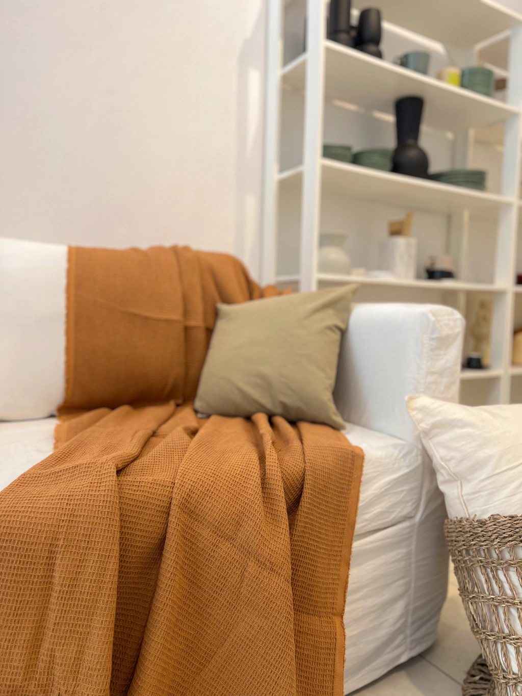 Tenemos la manta que necesitás para decorar tu sillón o cama! Nuestra manta dominique es GIGANTE. Mide 2x1,5mts! Es de tela waffle o nido de abeja con terminación desflecada